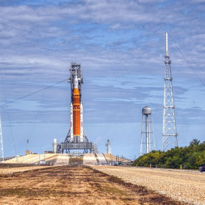 佛罗里达州肯尼迪航天中心39B发射台,阿尔忒弥斯2号的太空发射系统火箭和猎户座飞船整装待发。 IC Photo