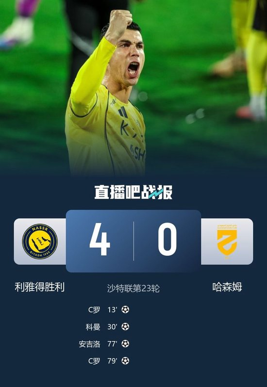 直播吧2月22日讯 北京时间2月22日凌晨3时整,2025-26赛季沙特联第23轮在沙特国王大学体育场展开角逐,利雅得胜利主场迎战哈森姆。上半场C罗连场破门,科曼传射,菲利克斯助攻,下半场C罗双响+生涯第964球,安吉洛一条龙建功,科曼再送助攻。最终利雅得胜利主场4-0大胜哈森姆,胜利豪取联赛8连胜,因新月本轮战平,胜利积55分以1分优势登顶积分榜。