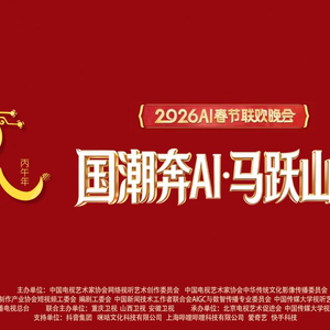 《国潮奔AI・马跃山河——2026AI春节联欢晚会》是尝试全民共创的全AI文艺晚会,践行了新大众文艺“开门办春晚”的宗旨,以精品视听引领大众的创作热情,以AI技术探索中国传统文化与数字艺术相映成辉的视听创作新路径。