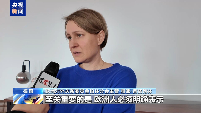 欧洲对外关系委员会柏林分会主管 雅娜·普格列林:至关重要的是,欧洲人必须明确表示,任何关于乌克兰冲突最后阶段的决定,都必须得到欧洲的同意。因为这是关系到欧洲安全的根本问题,我认为欧洲人过去已经多次明确表示,如果他们没有参与谈判,他们无法接受绕过他们单独作出的决定。