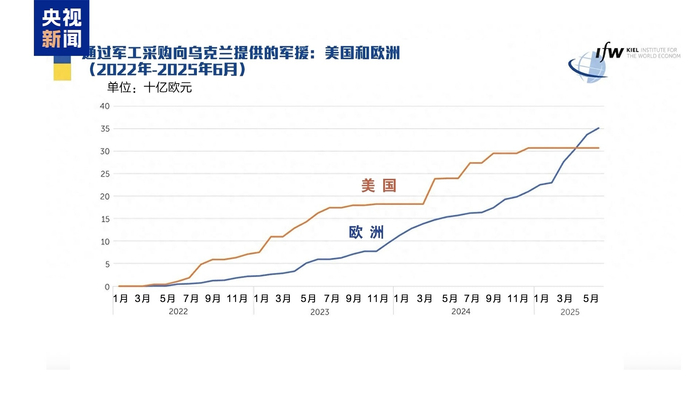 美国《防务新闻》去年8月援引德国基尔世界经济研究所的数据称,自2022年俄乌冲突爆发到2025年6月底,欧洲对乌支持的军工产出规模首次超越美国。