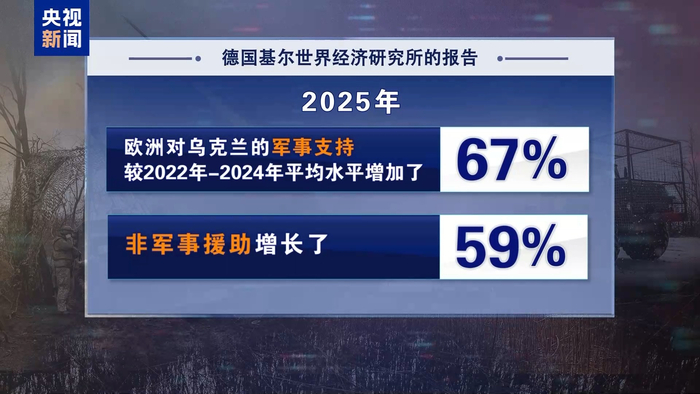 根据德国基尔世界经济研究所本月发布的一份最新报告,2025年欧洲对乌克兰的军事支持较2022年—2024年平均水平增加了67%,非军事援助增长了59%。欧盟方面发布的数据称,自俄乌冲突爆发以来,欧盟及其成员国对乌援助规模达到了1933亿欧元,其中包括693亿欧元的军事支持。