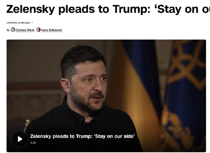 #泽连斯基恳求特朗普#[泽连斯基恳求特朗普:“站在我们这边”]#泽连斯基说美国绝不能抽身#乌克兰总统泽连斯基23日在接受美国有线电视新闻网(CNN)采访时,向特朗普发出恳求,希望这位美国总统 “站在乌克兰一边”。