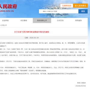 新京报讯 2月24日,河南郏县人民政府官网发布关于刘某飞等涉嫌寻衅滋事案件情况的通报,内容如下: