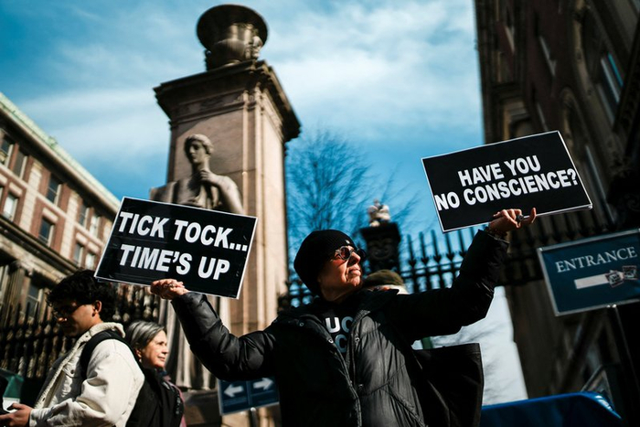 如今,学生们的不满情绪也在迅速蔓延。包括“哥伦比亚大学学生反种族隔离撤资组织”在内的多个团体发起了紧急集会,约100人参加了在校门外举行的示威活动。