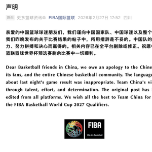 2月27日,FIBA国际篮联发布声明——