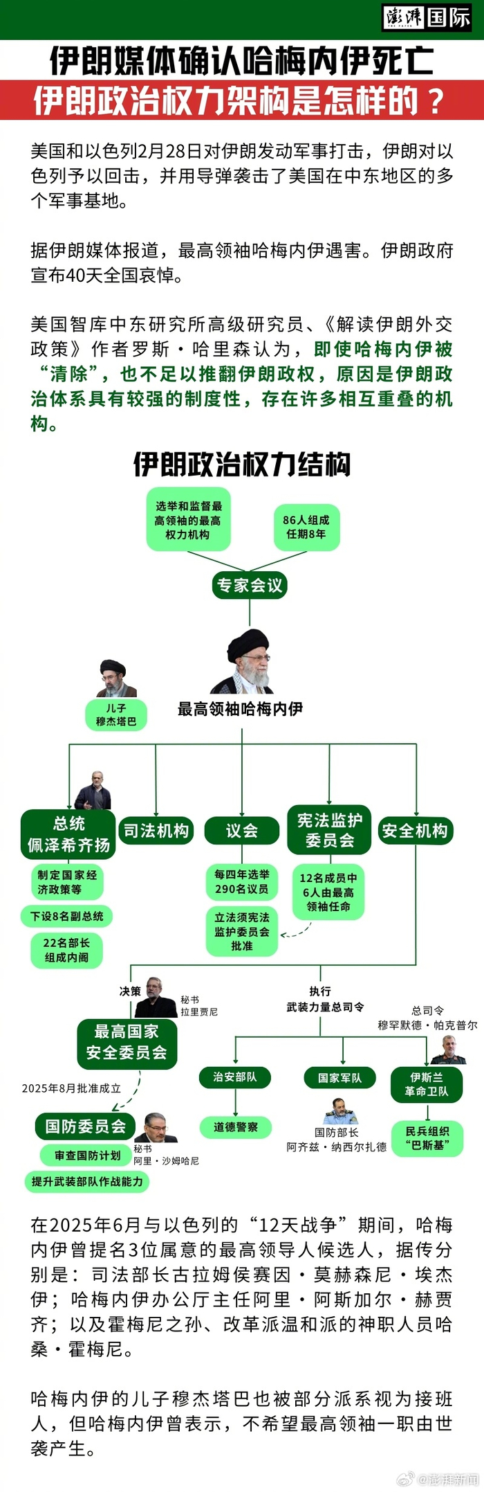 [一图看懂|伊媒确认哈梅内伊死亡,#伊朗政治权力架构#是怎样的]