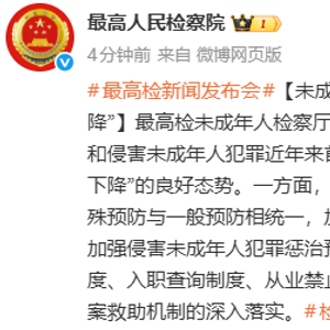 最高检:未成年人犯罪和侵害未成年人犯罪近年来首次“双下降”