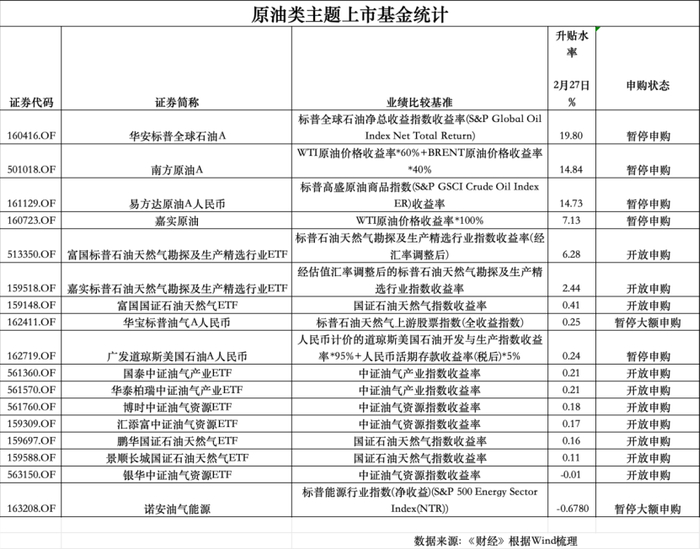 国际油价的走强直接传导至国内相关资产端。A股市场上,油气板块掀起涨停潮,市值较大的中国石油、中国海油、中国石化历史性集体涨停。基金方面,Wind数据显示,2月24日,南方原油LOF、原油LOF易方达涨停。3月2日开盘后,原油基金再度大涨,原油LOF易方达、南方原油LOF、标普油气ETF上午涨幅均超8%。截至收盘,多达20只上市基金涨幅超9%,12只基金涨停。