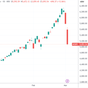 财联社3月4日讯(编辑 史正丞)当地时间周三,韩国股民迎来载入史册的一天:韩国综合股价指数收于5093.54点,较前一日下跌12.06%。