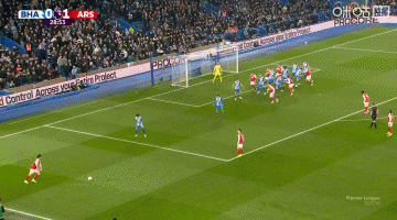 下半场补时7分钟。最终全场比赛结束,布莱顿0-1阿森纳。