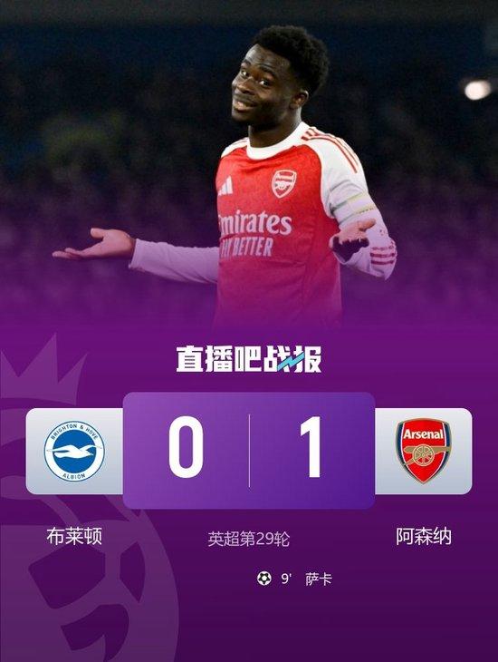 先赛1轮7分领跑!阿森纳1-0布莱顿联赛3连胜 萨卡兜射制胜