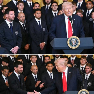 直播吧03月06日讯 美职联冠军迈阿密国际今日在白宫拜访特朗普总统,庆祝球队2025赛季夺冠。