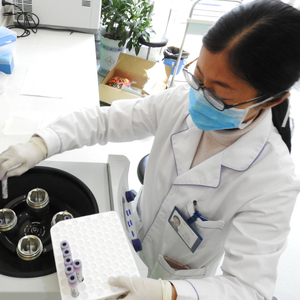 临床试验中心工作人员利用离心机分离血液。 IC photo
