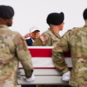 当地时间3月7日,特朗普向抬着死于伊朗无人机袭击的罗伯特·马赞的遗体敬礼 当地时间3月7日,特朗普向抬着死于伊朗无人机袭击的罗伯特·马赞的遗体敬礼 美联社