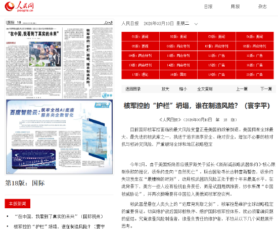 人民日报寰宇平:核军控的“护栏”坍塌,谁在制造风险?