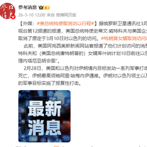 [外媒:美总统特使取消访以行程]据俄罗斯卫星通讯社3月10日援引以色列电视台第12频道的报道,美国总统特使史蒂文·威特科夫与美国企业家贾里德·库什纳取消了原定于3月10日对以色列的访问。