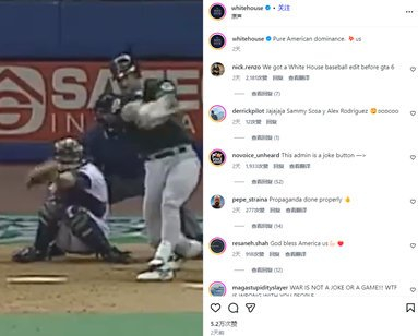 在另一个视频里,白宫把空袭刻画成了“棒球比赛得分”。