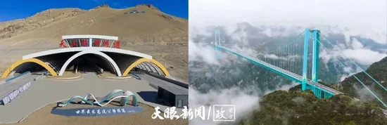 一座来自多彩贵州,是横跨“地球裂缝”的花江峡谷大桥,大桥以桥面距水面625米的垂直高度,问鼎“世界第一高”;一座扎根大美新疆,是乌鲁木齐至尉犁高速公路的“咽喉工程”天山胜利隧道,凭22.13公里长度成“世界最长高速公路隧道”。