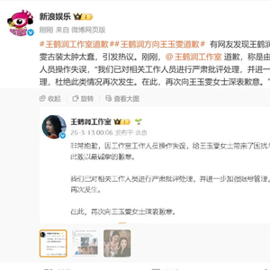 刚刚,王鹤润工作室道歉,称是由于工作室工作人员操作失误,“我们已对相关工作人员进行严肃批评处理,并进一步加强账号管理,杜绝此类情况再次发生。在此,再次向王玉雯女士深表歉意。”