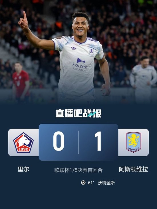 直播吧3月13日讯 北京时间3月13日凌晨1:45,欧联杯1/8决赛首回合,里尔坐镇皮埃尔-莫鲁瓦球场迎战维拉。上半场两队都未能制造太好的机会,暂时0-0战平;下半场沃特金斯头球破门,随后错失一次单刀球机会,最终维拉客场1-0战胜里尔,占据晋级先机。两队次回合交手将是在北京时间3月20日凌晨4:00,维拉在主场迎战里尔。