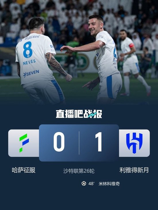 新月客场领先!米林科维奇头球破门!第48分钟,卡努45度角挑传到门前,米林科维奇抢点甩头攻门入网,哈萨征服0-1利雅得新月!↓