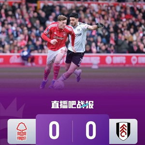 全场比赛结束,诺丁汉森林0-0富勒姆。