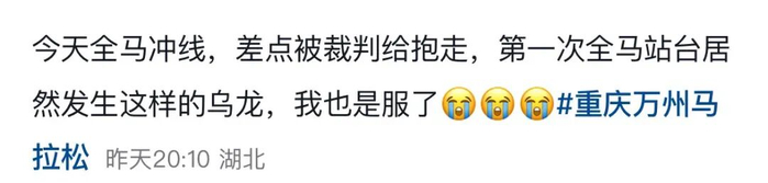 重庆万州马拉松冠军冲线被拦截冠军回应马拉松冲线被裁判拦截