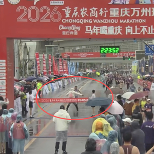 3月15日,2026重庆农商行重庆万州环湖马拉松开跑,比赛中发生了一幕引发网友议论,一名选手即将冲线,却被裁判拦住,随后这名选手被安排重新冲线。
