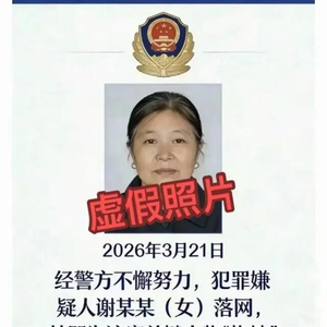 据南方都市报消息,近日,一张标有警徽、配着所谓落网“梅姨”照片的图片,在全网流传。3月22日,记者从相关部门获悉,该网传图片非警方发布,图中所谓的“梅姨”照片为虚假照片。