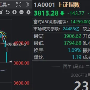 3月23日,市场全天震荡调整,三大指数低开低走盘中均跌超4%,沪指尾盘勉强守住3800点关口。截至收盘,沪指跌3.63%,深成指跌3.76%,创业板指跌3.49%。