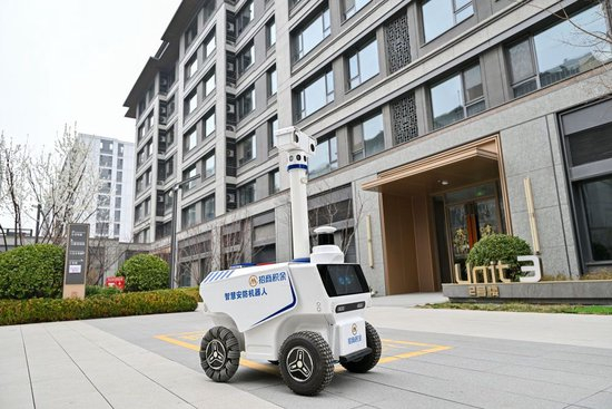 2026年3月17日,智慧安防机器人在雄安新区华清园小区内巡查。该机器人具备全天候自动巡逻、环境监测、人体检测、车牌识别、烟火识别等功能,能够完成部分夜间值守、重点区域巡查等工作,提升社区安全感和治理效率。