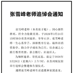 3月26日凌晨,“张雪峰老师”微博发布追悼会通知。