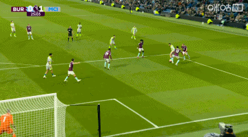 第45+1分钟,伯恩利定位球造成曼城禁区内乱战,胡桑诺夫先出一脚解围↓