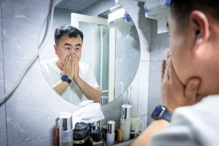 3月20日清晨,张家口李橙子家中。李橙子起床后进行洗漱。