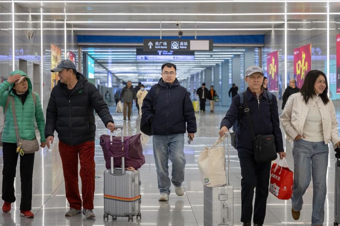 2026年3月20日早上,北京北站站台上。下高铁后,李橙子随着人流出站。