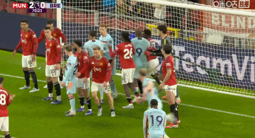第90+6分钟,布伦特福德左侧长距离界外球扔出,科林斯禁区内推倒卡塞米罗,随后不满主裁判的判罚,吃到黄牌↓