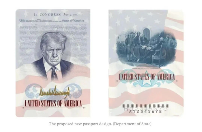 哦,也是同一天的新闻,美国国务院透露,将发行印有特朗普肖像和签名的美国新护照。