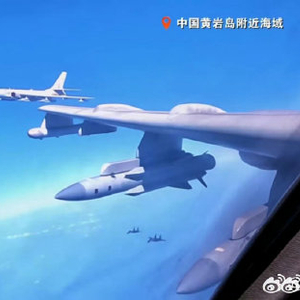 黄岩岛上空轰6K挂弹警巡