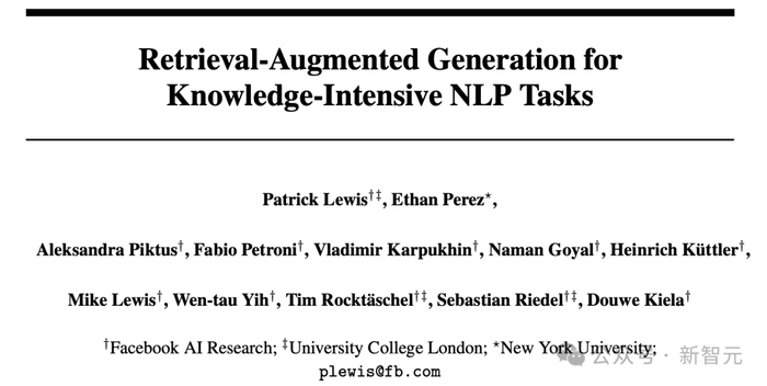 另有Meta(Facebook)团队在2020年在如下论文中,首次提出了如今大模型用到的一项技术的概念——检索增强生成(RAG)。