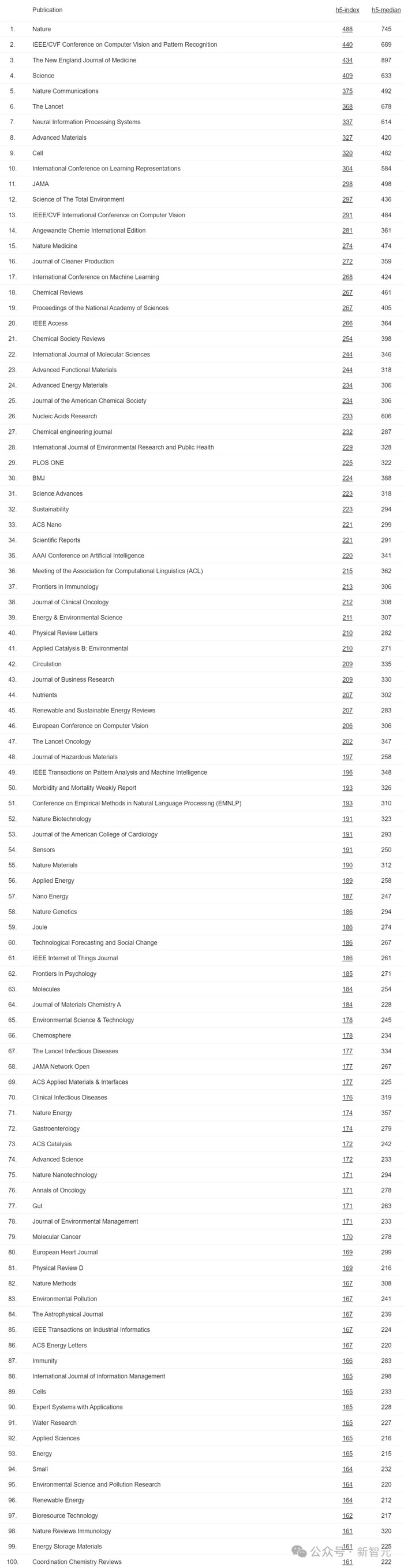 每年,Google Scholar都会更新一次学术指标,并列出位列前100名的出版物。