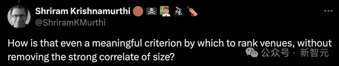 有网友发出质疑:如果不考虑「顶会规模」这一「强相关」的因素,这怎么可能成为一个有意义的评价顶会的标准呢?