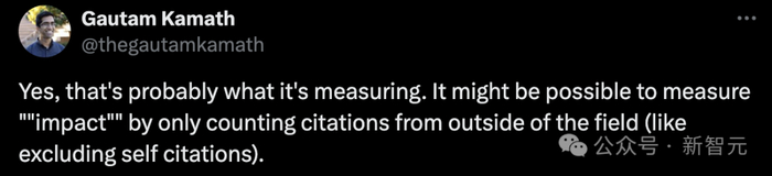 对此,Gautam Kamath称,是的这就是谷歌正在衡量的因素。我觉得这里有一个更好的衡量「影响力」的方法——只计算来自本领域外的引用(类似于排除「自引」)。