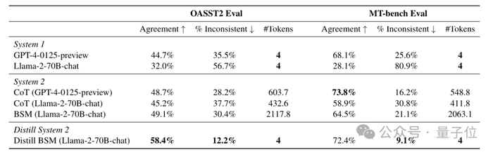 但从输出质量上来看,表现却能接近系统2模型,也就是实现了系统2能力向系统1的转移。