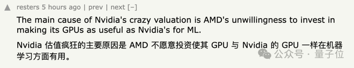 更有网友认为,英伟达一家独大的原因是AMD不愿意投资让其GPU拥有更高的机器学习性能(而不只是拥有CUDA这一个优势)。