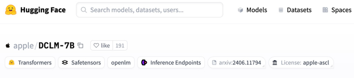 项目链接:https://huggingface.co/apple/DCLM-7B