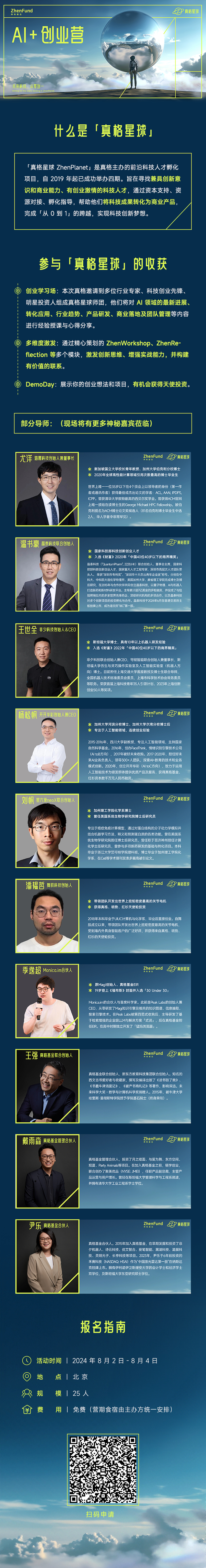 全程免费!「真格星球AI+创业营」与数十位大咖导师一道,碰撞AI灵感、寻找落地商机。扫码立即报名,加入真格创业生态。
