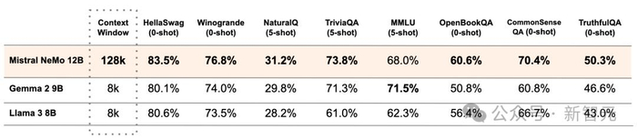 GPT-4o mini头把交椅还未坐热,Mistral AI联手英伟达发布12B参数小模型Mistral Nemo,性能赶超Gemma 2 9B和Llama 3 8B。
