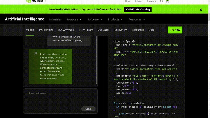 用户可以立即通过ai.nvidia.com作为NVIDIA NIM体验Mistral NeMo,可下载的NIM版本即将推出。