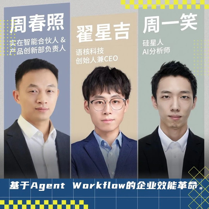 本次直播邀请到了两位在该领域深耕的创业者——语核科技的创始人兼CEO翟星吉,以及实在智能的合伙人、产品创新部负责人周春照作为嘉宾,讨论主要聚焦于AI如何利用Agent来引领企业自动化和智能化的新浪潮。我们深入探讨了Agent Workflow在重塑企业业务流程、提升效率以及创造新的商业机会方面的作用。